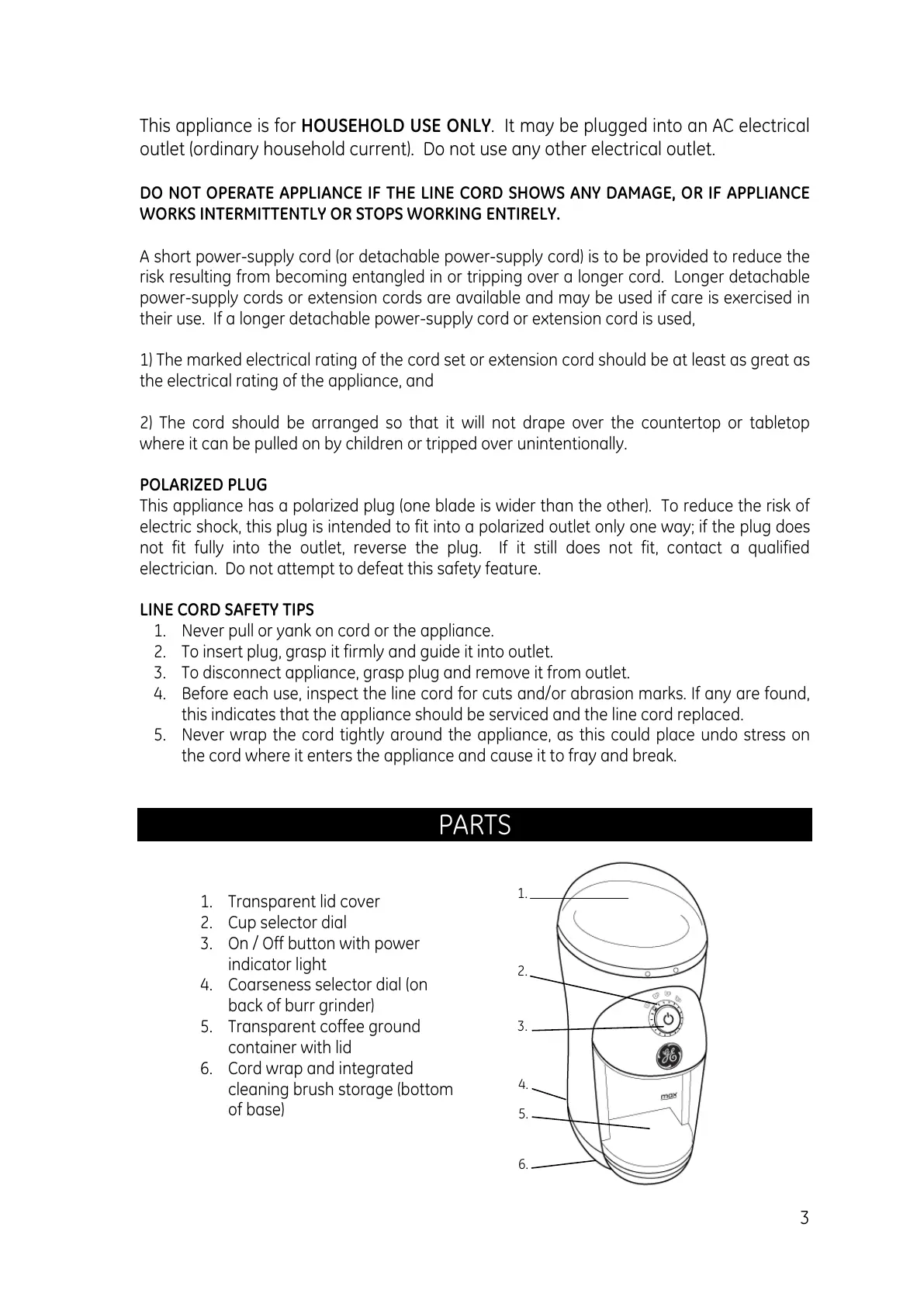 This appliance is for HOUSEHOLD USE ONLY. It may be plugged into an AC electrical