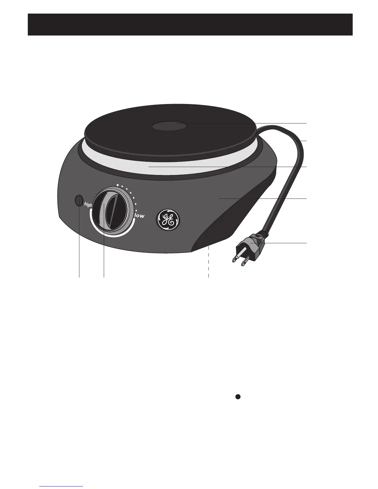 7. Temperature control dial (main dial positions: , low, high)