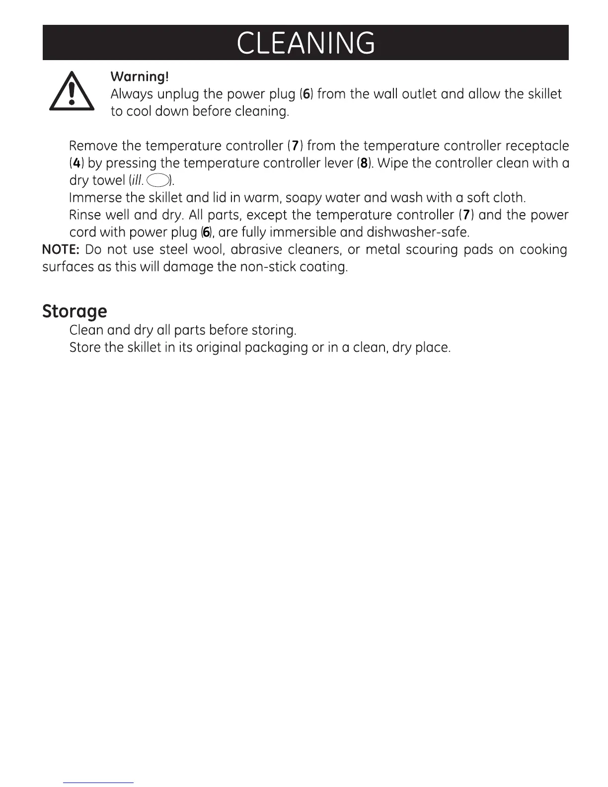 GE 169216 - Cleaning and Storage; Storage Instructions