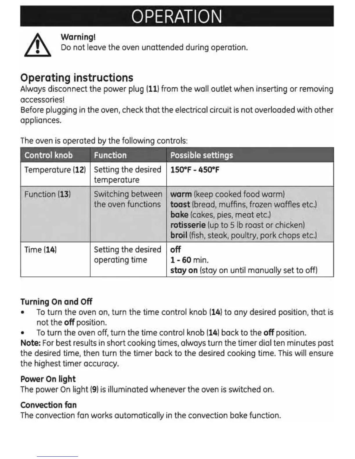 GE 169220 - Control Panel and Operation