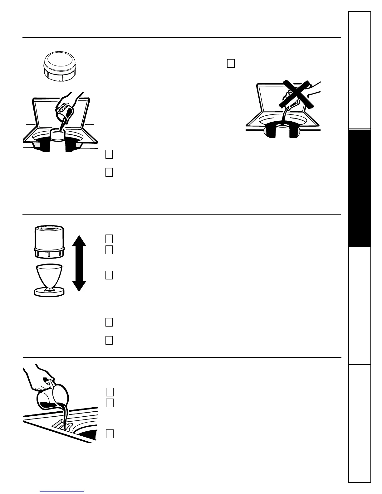 ■ Never pour undiluted liquid chlorine bleach directly onto clothes or into the wash basket.