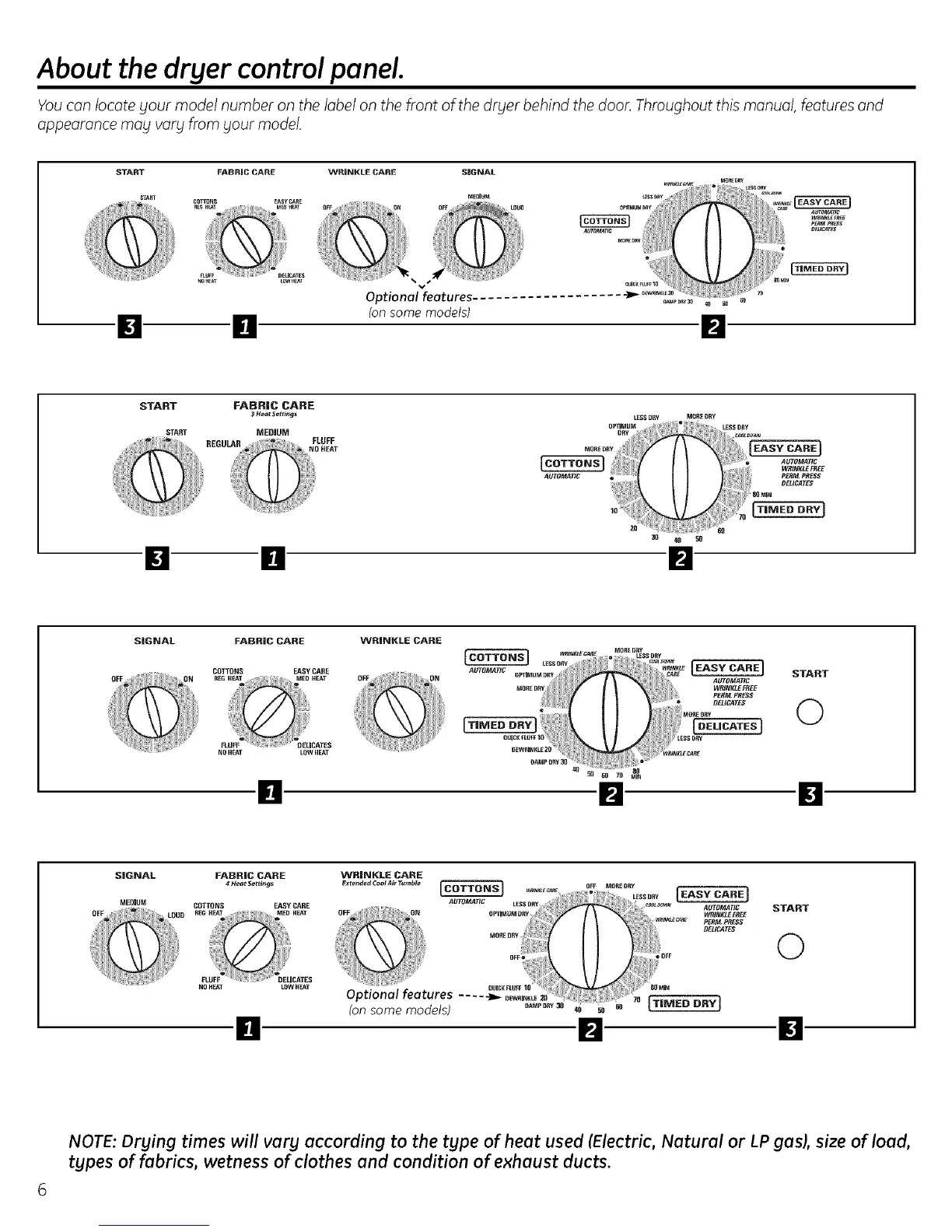 NOTE: Drying times will vary according to the tgpe of heat used (Electric, Natural or LP gas), size of load,