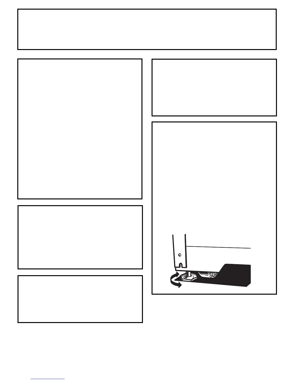 opened. Leveling legs should be set so the front of the