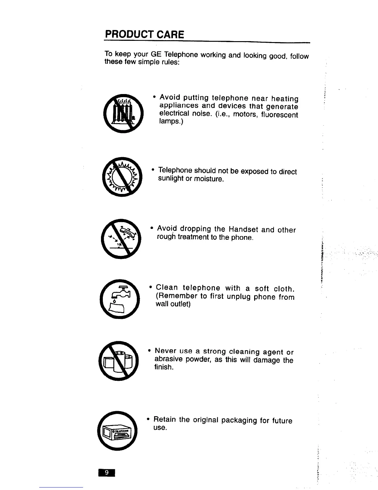 To keep your GE Telephone working and Iookinggood, follow