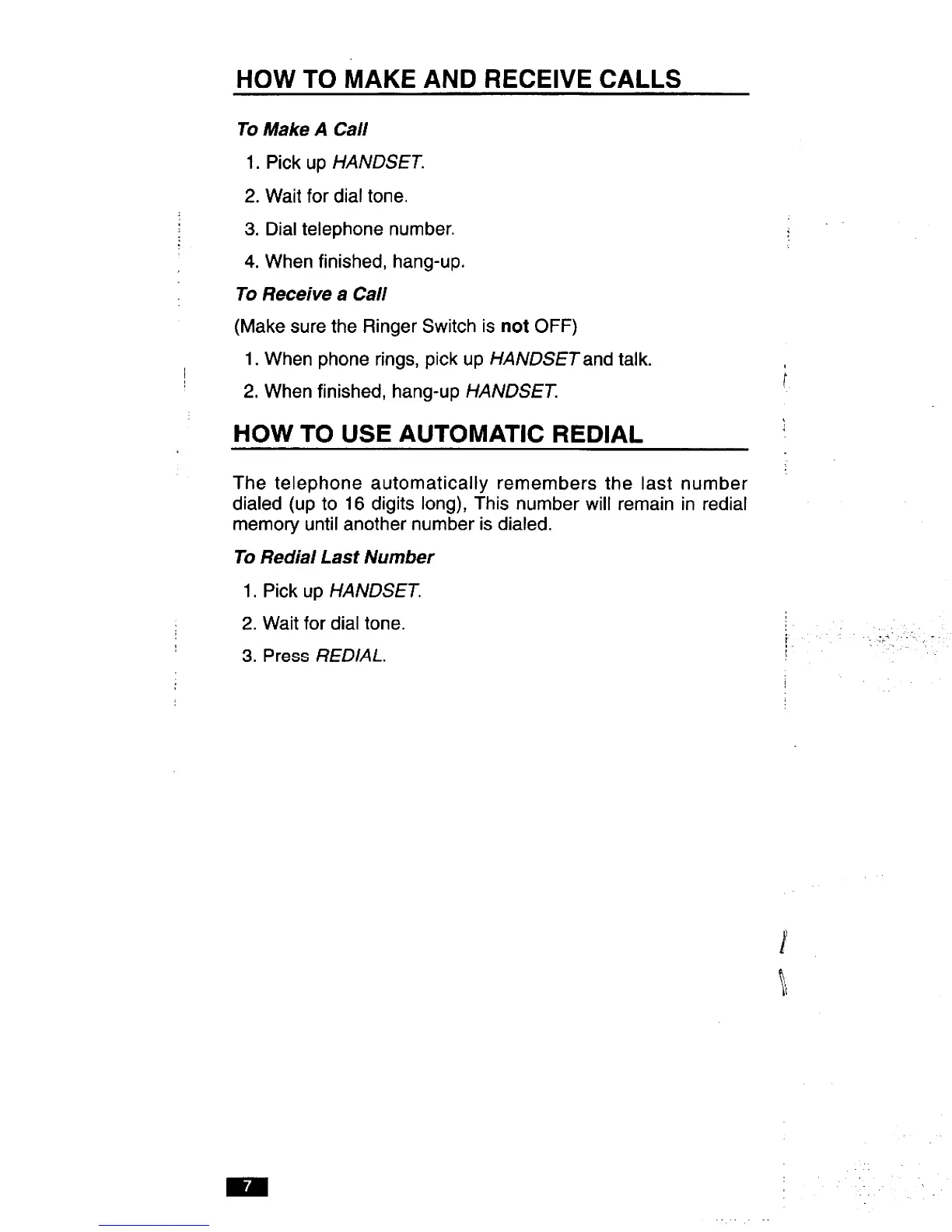 Pick up HANDSET.
