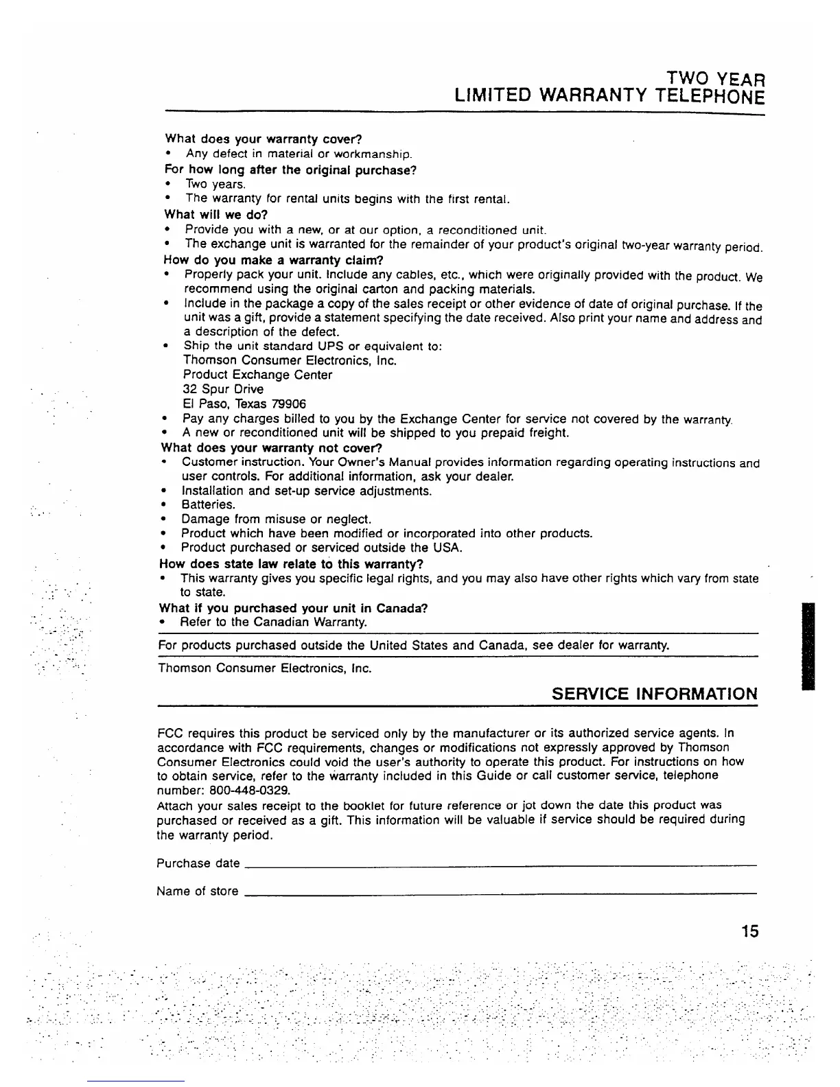 to obtain service, refer to the warranty included in this Guide or call customer service, telephone