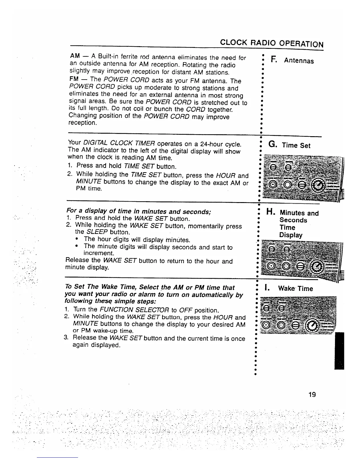 2. While holding the WAKE SET button, press the HOUR and