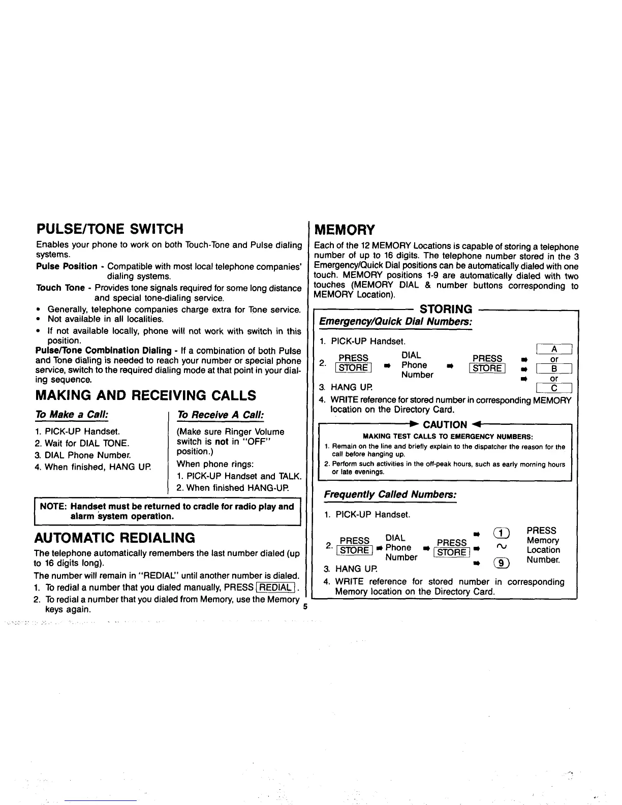 ;ach of the 12 MEMORY Locations is capable of storing a telephone