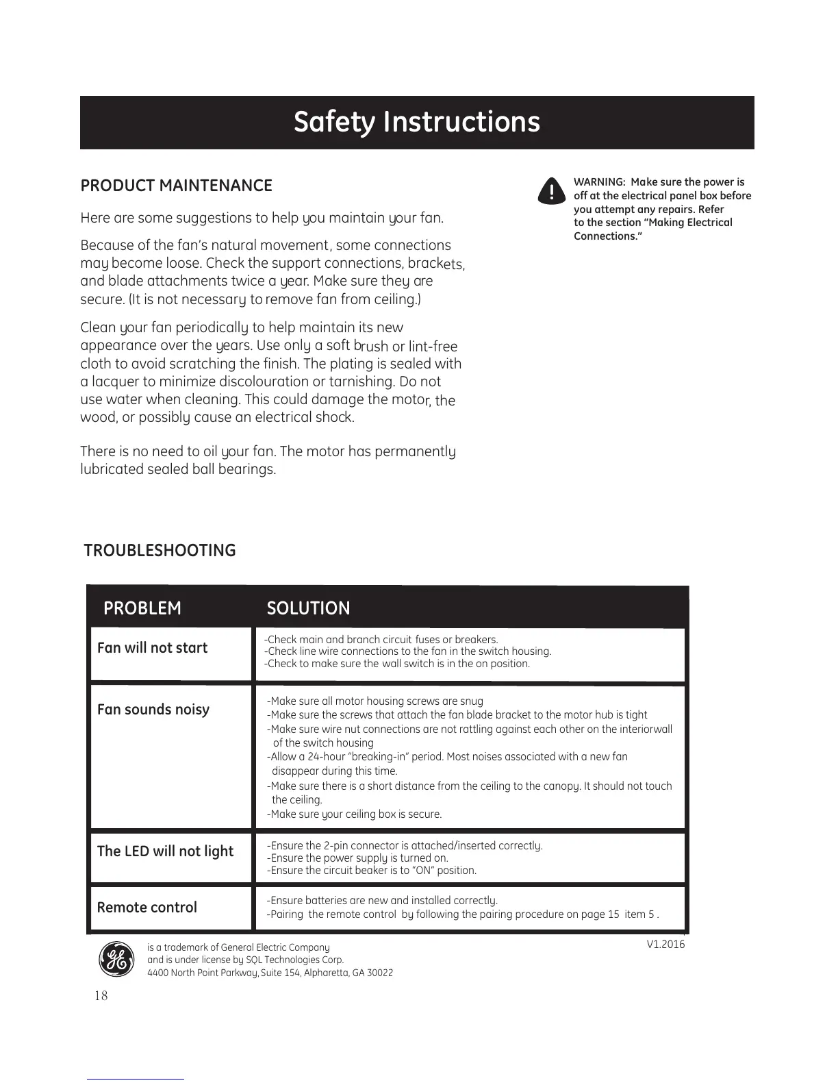 Here are some suggestions to help you maintain your fan.