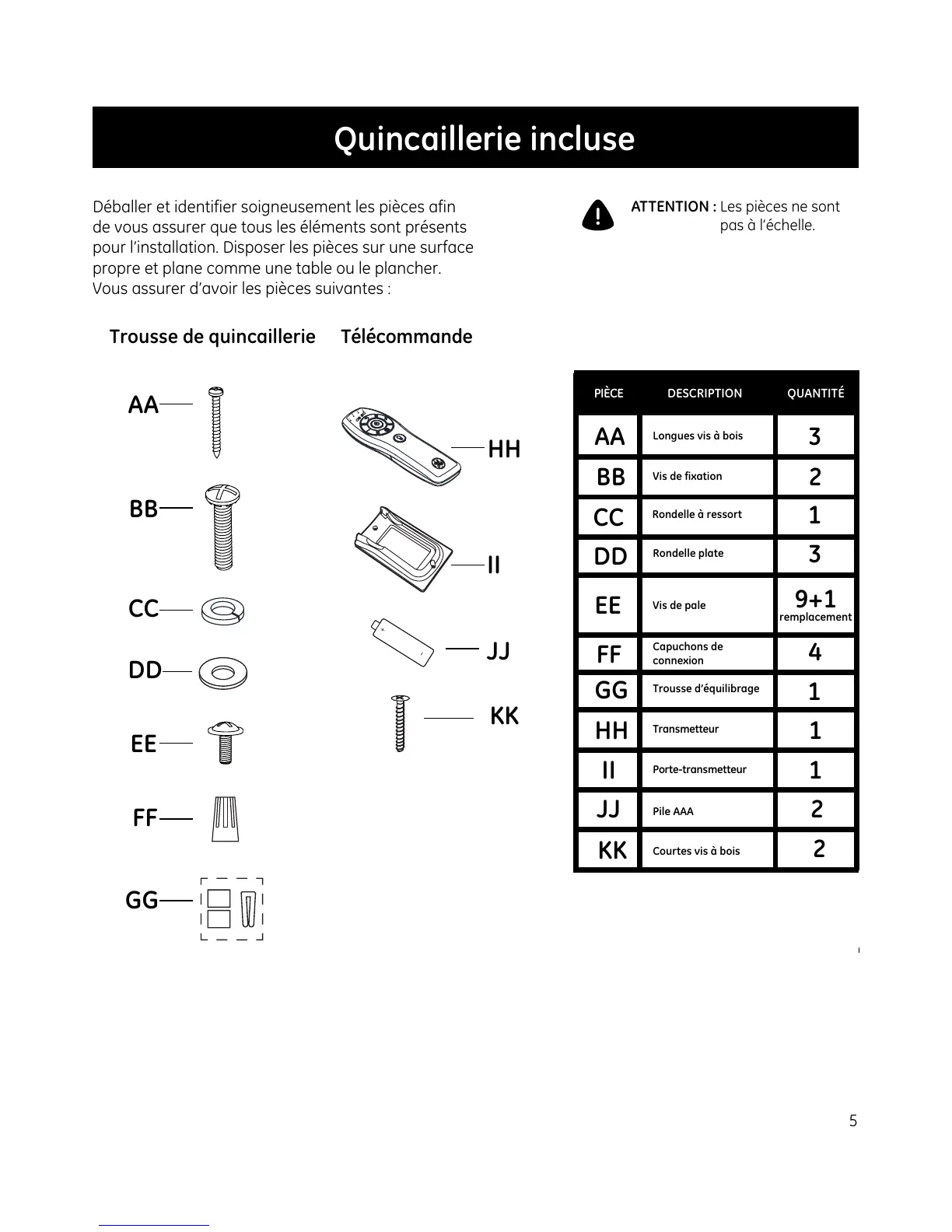 ATTENTION : Les pièces ne sont