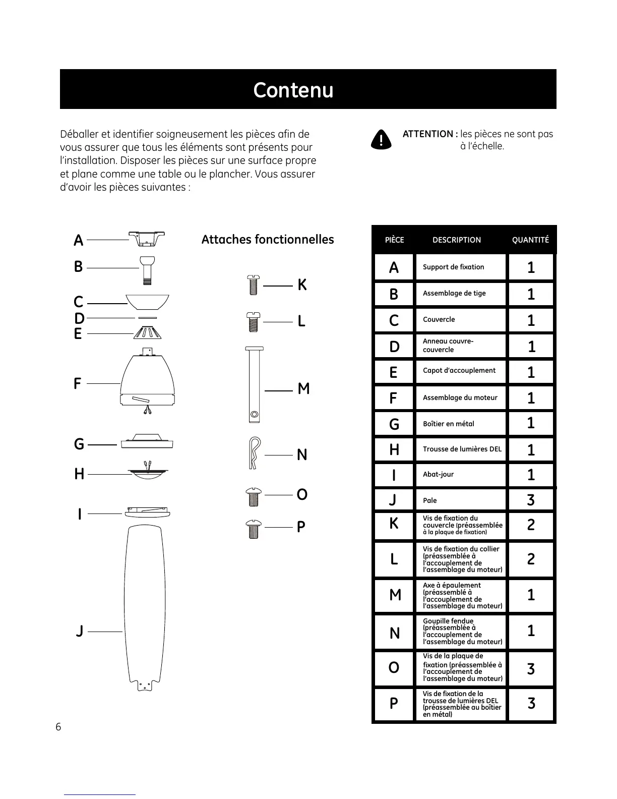 Déballer et identifier soigneusement les pièces afin de