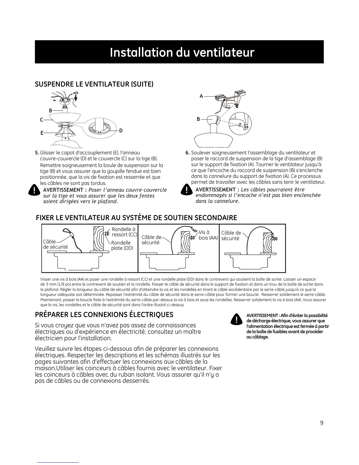maison.Utiliser les coinceurs à câbles fournis avec le ventilateur. Fixer