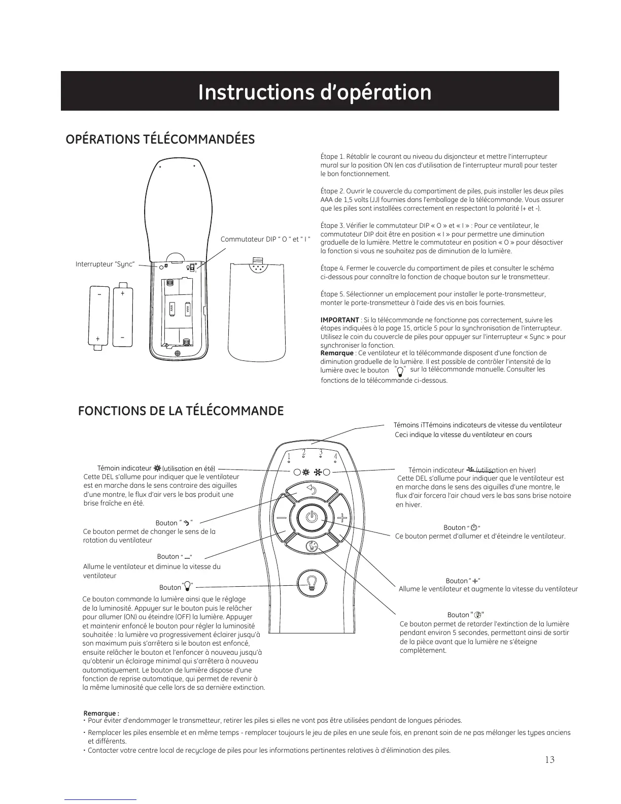 IMPORTANT : Si la télécommande ne fonctionne pas correctement, suivre les