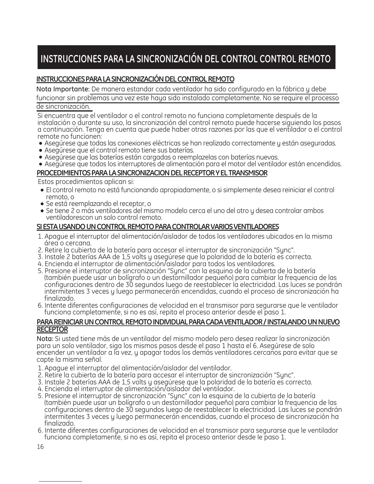 instalación o durante su uso, la sincronización del control remoto puede hacerse siguiendo los pasos