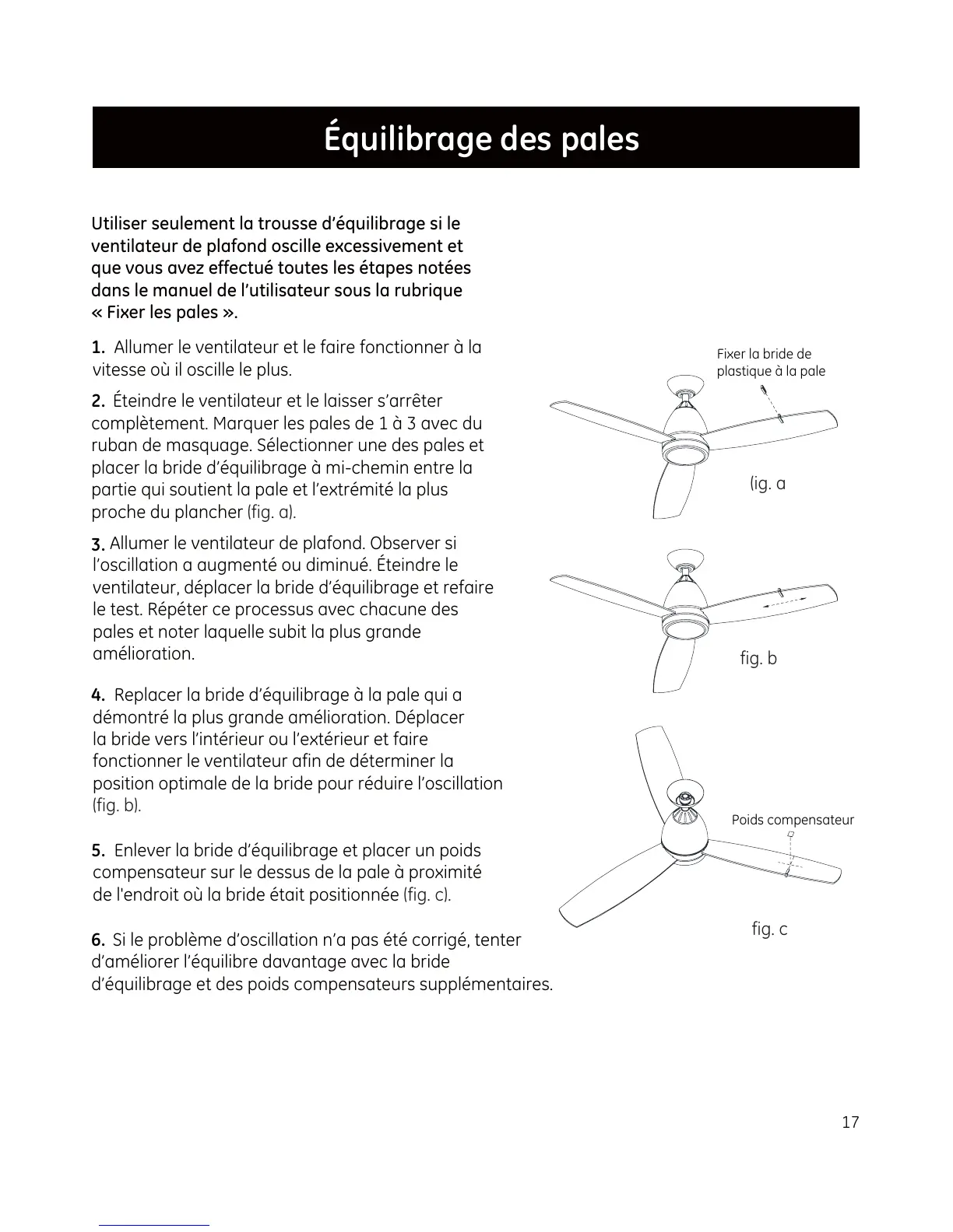 ventilateur, déplacer la bride d’équilibrage et refaire