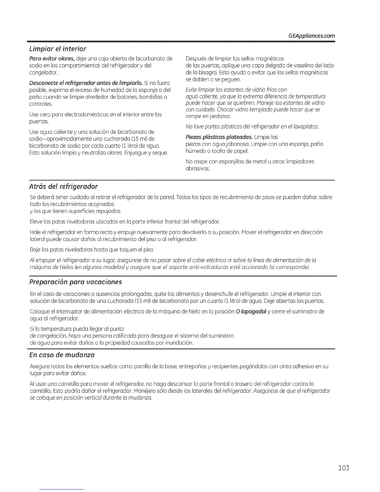 lateral puede causar dahos al recubrimiento del piso o al refrigerador.