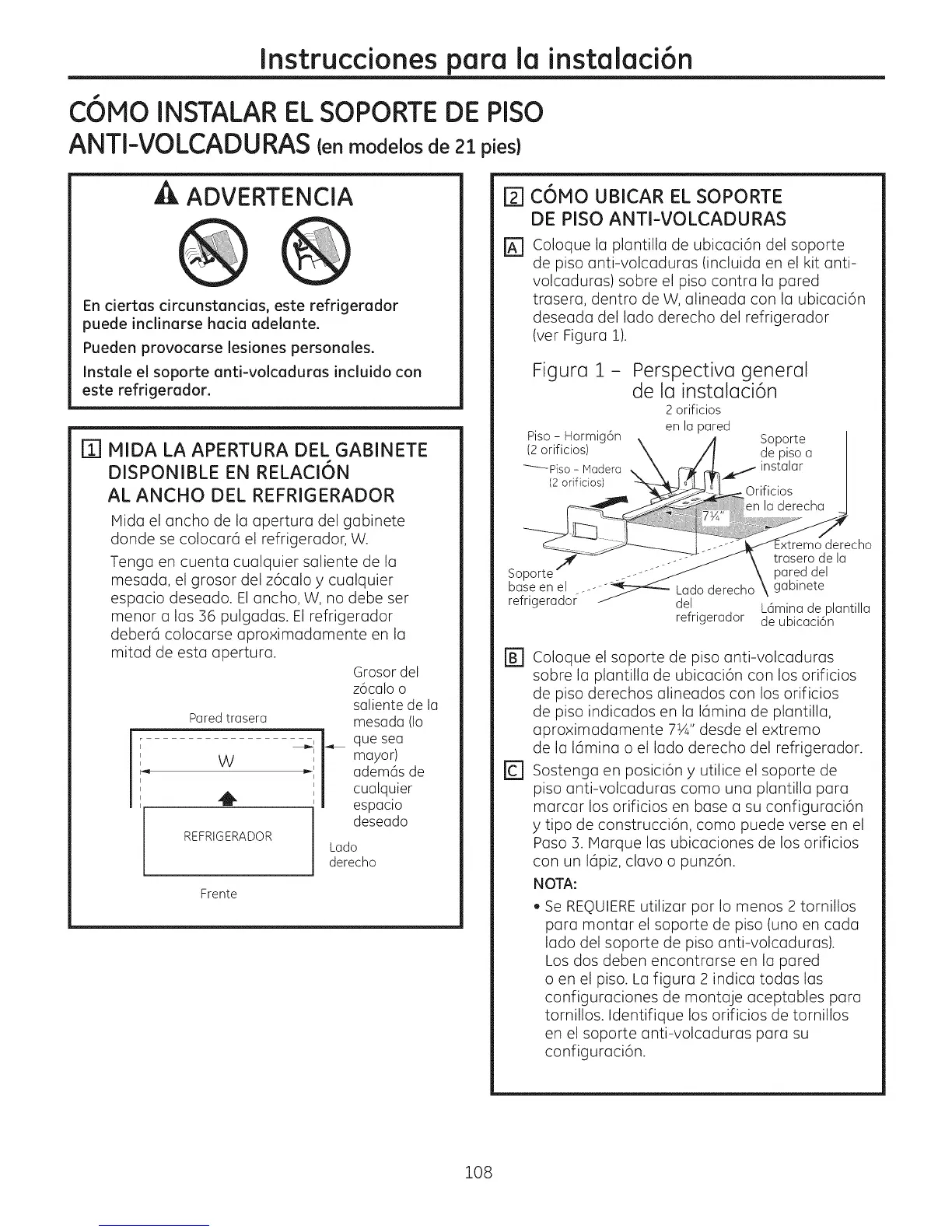 lado del soporte de piso anti-volcaduras).