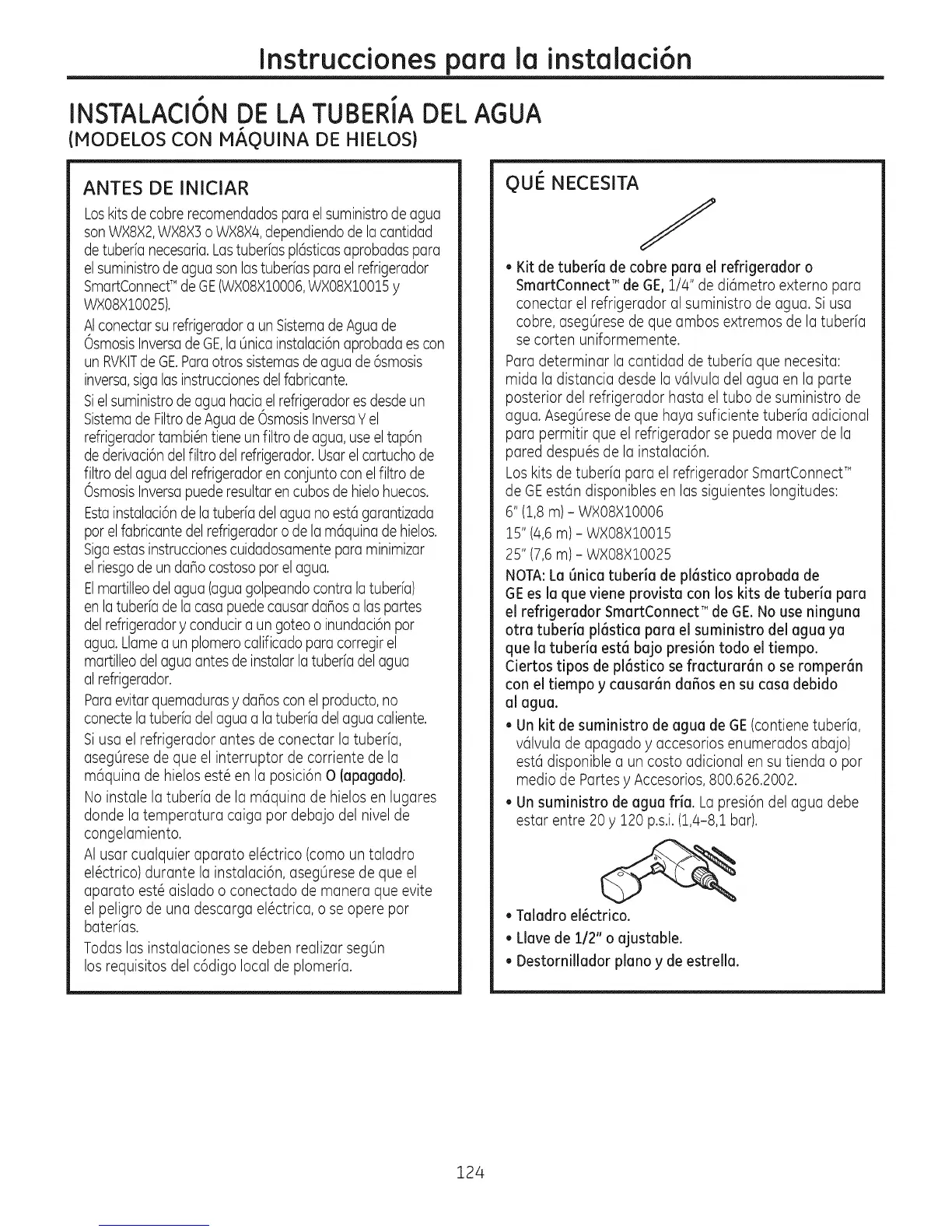 ° Unkit de suministro de agua de GE(contienetuberfa,