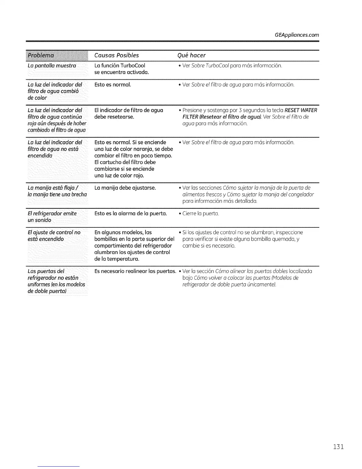 La luz del indicador det Esto es normal. , VerSabre el filtro de ague pare m6s informaci6n.