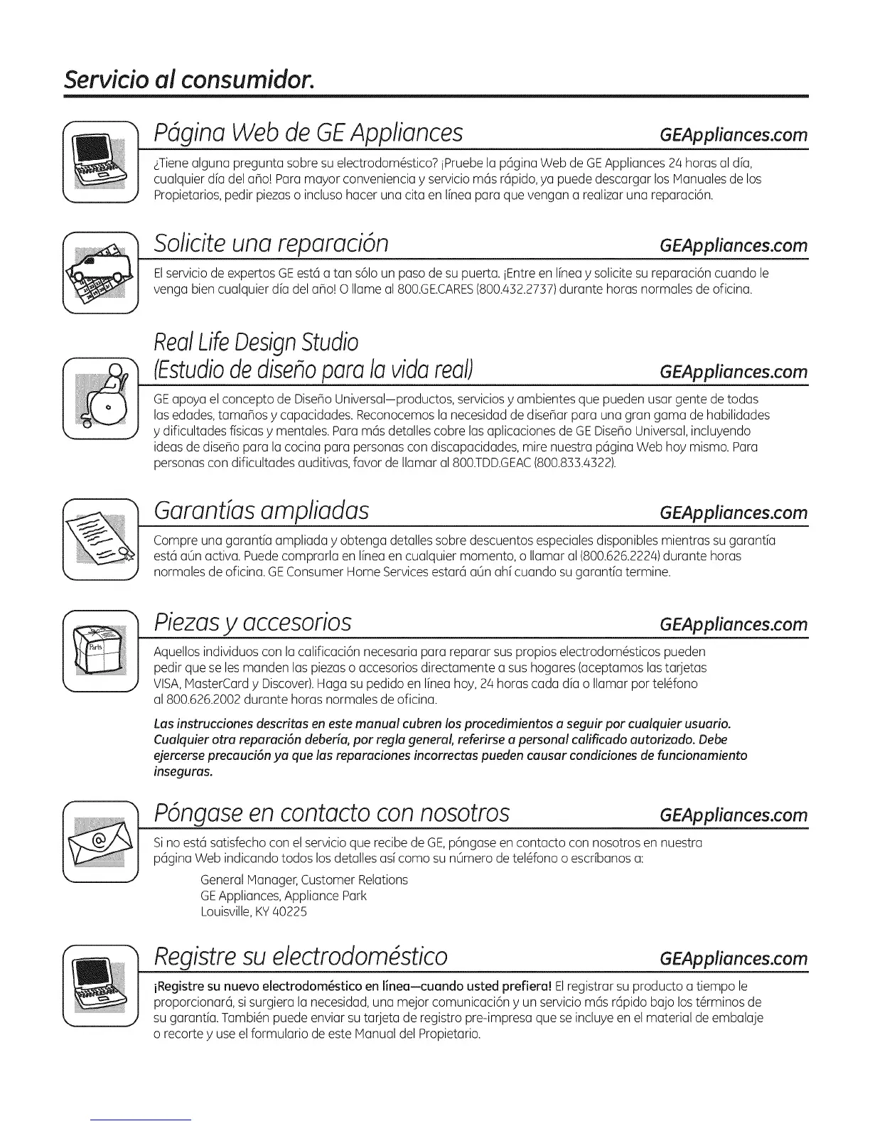 Sino est6 satisfecho con el servicio que recibe de GE,p6ngase en contacto con nosotros en nuestra