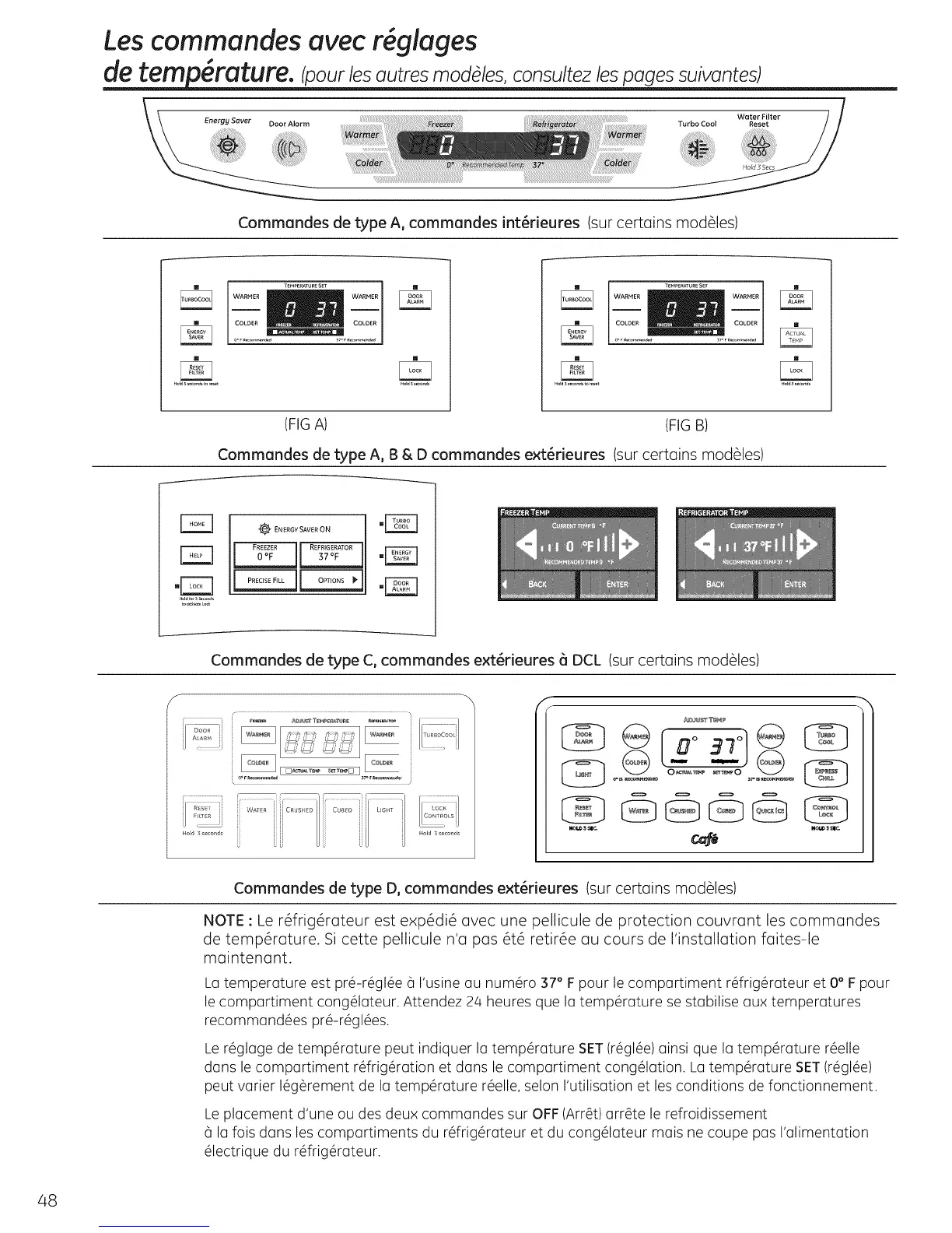 La temperature est pr&r_gl_e (3I'usine au num@o 37° F pour le compartiment r_frig@ateur et 0° Fpour