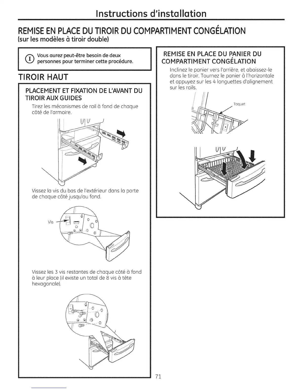 dans le tiroir. Tournez le panier 6 I'horizontale