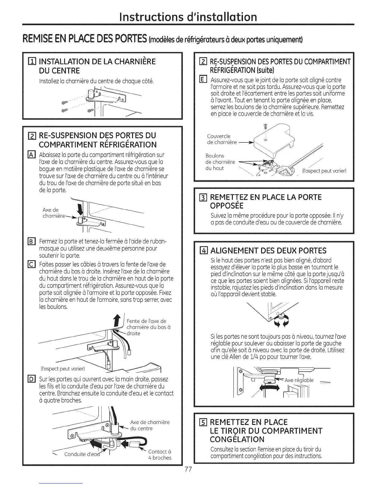 Siles portes ne sont toujours pasa niveau,tournez I'axe