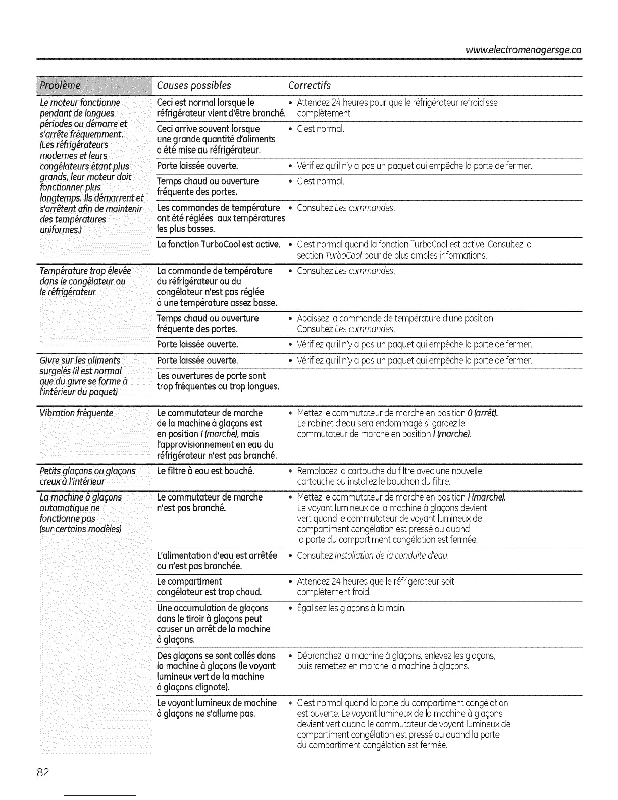 Lemoteur fonctio_ne Ceci est normal Iorsque le • Attendez 24 heures pourqua le rdrig@ateur refroidisse