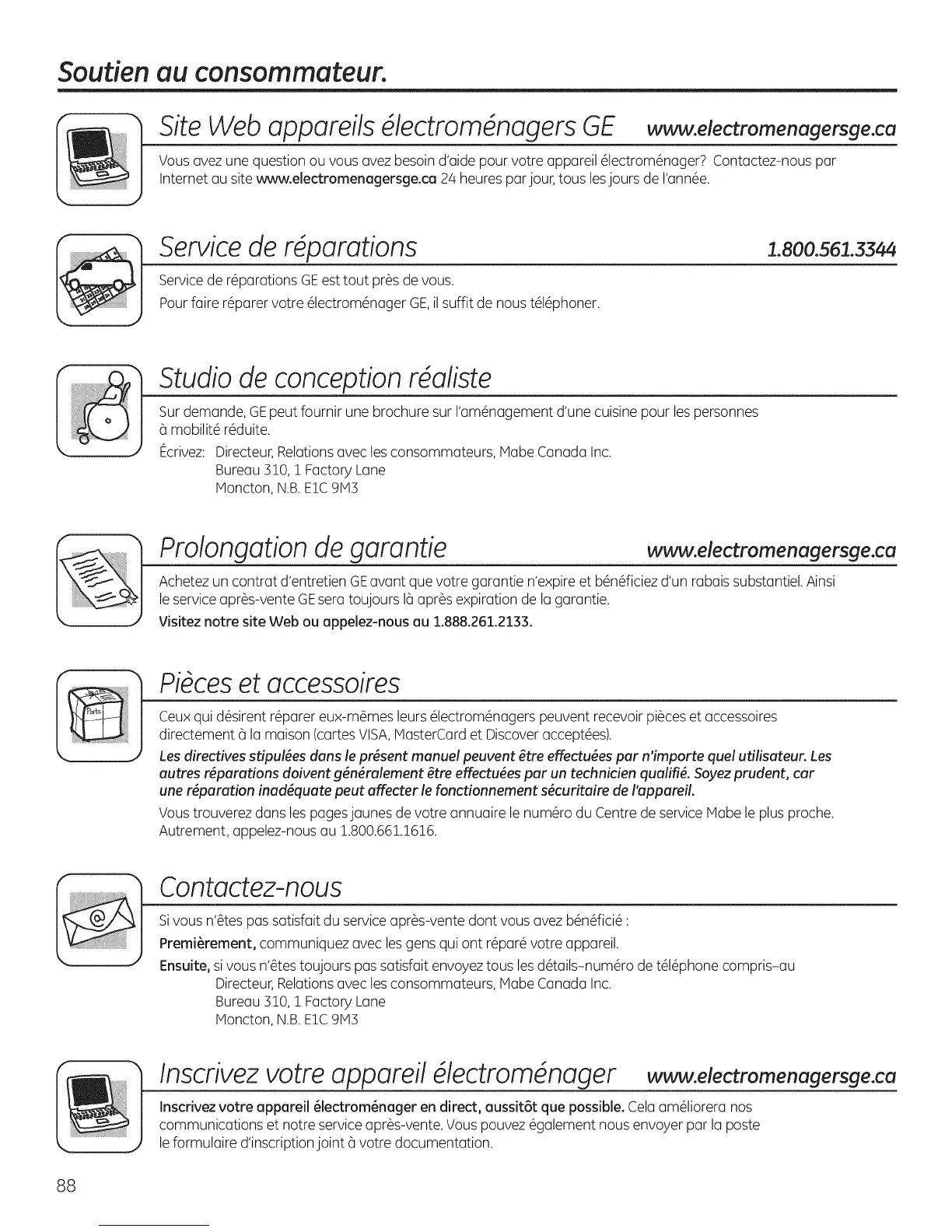 Ecrivez: Directeur,Relationsavec les consommateurs, Mabe Canada Inc.