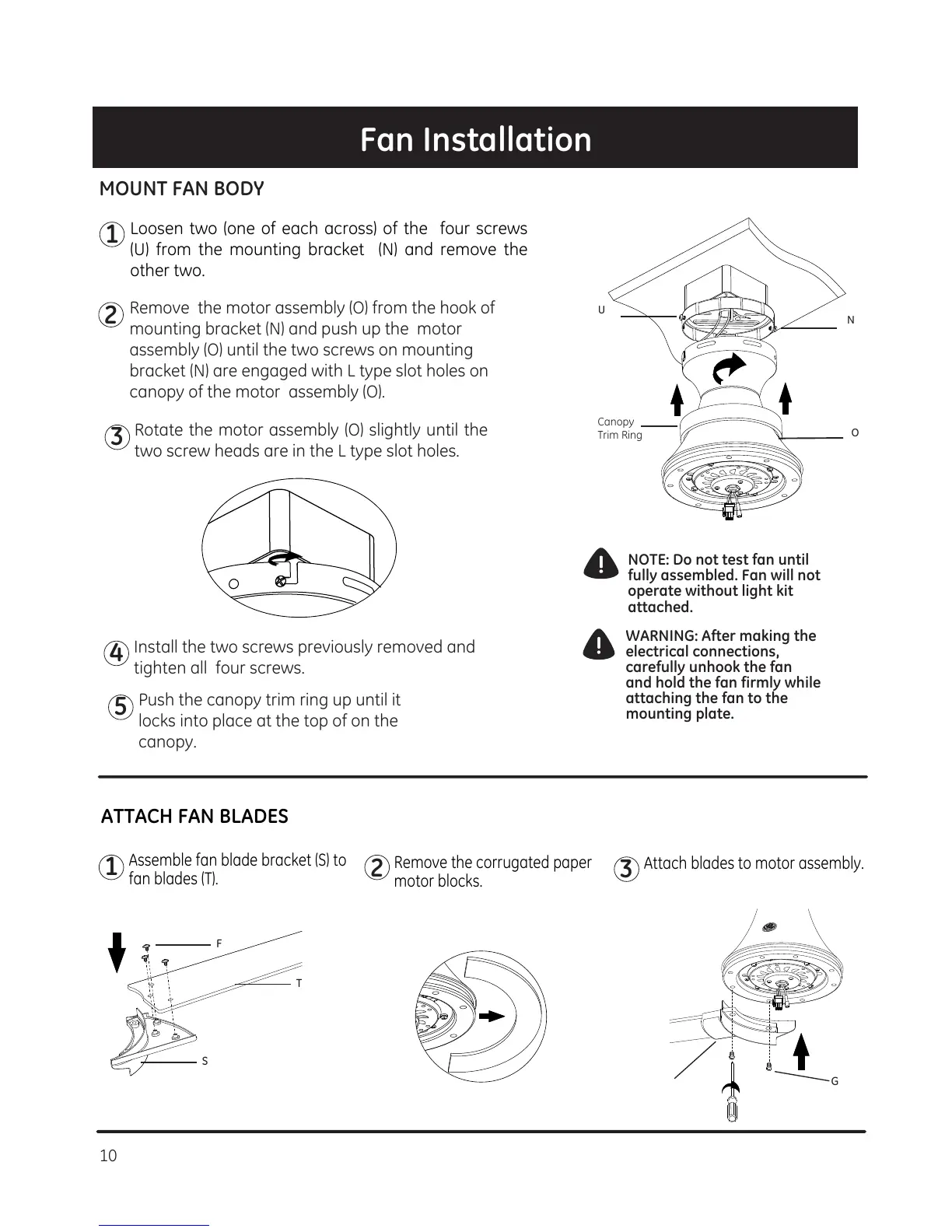 NOTE: Do not test fan until