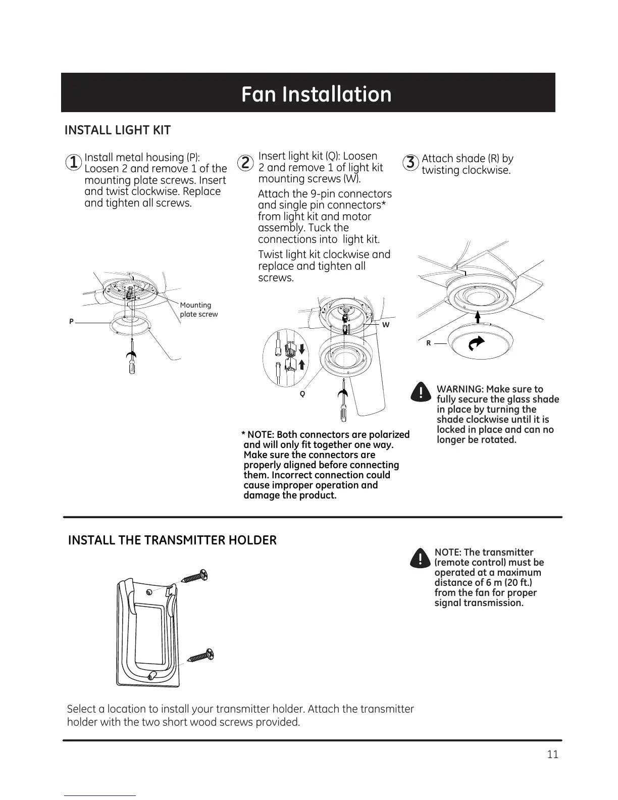 INSTALL THE TRANSMITTER HOLDER
