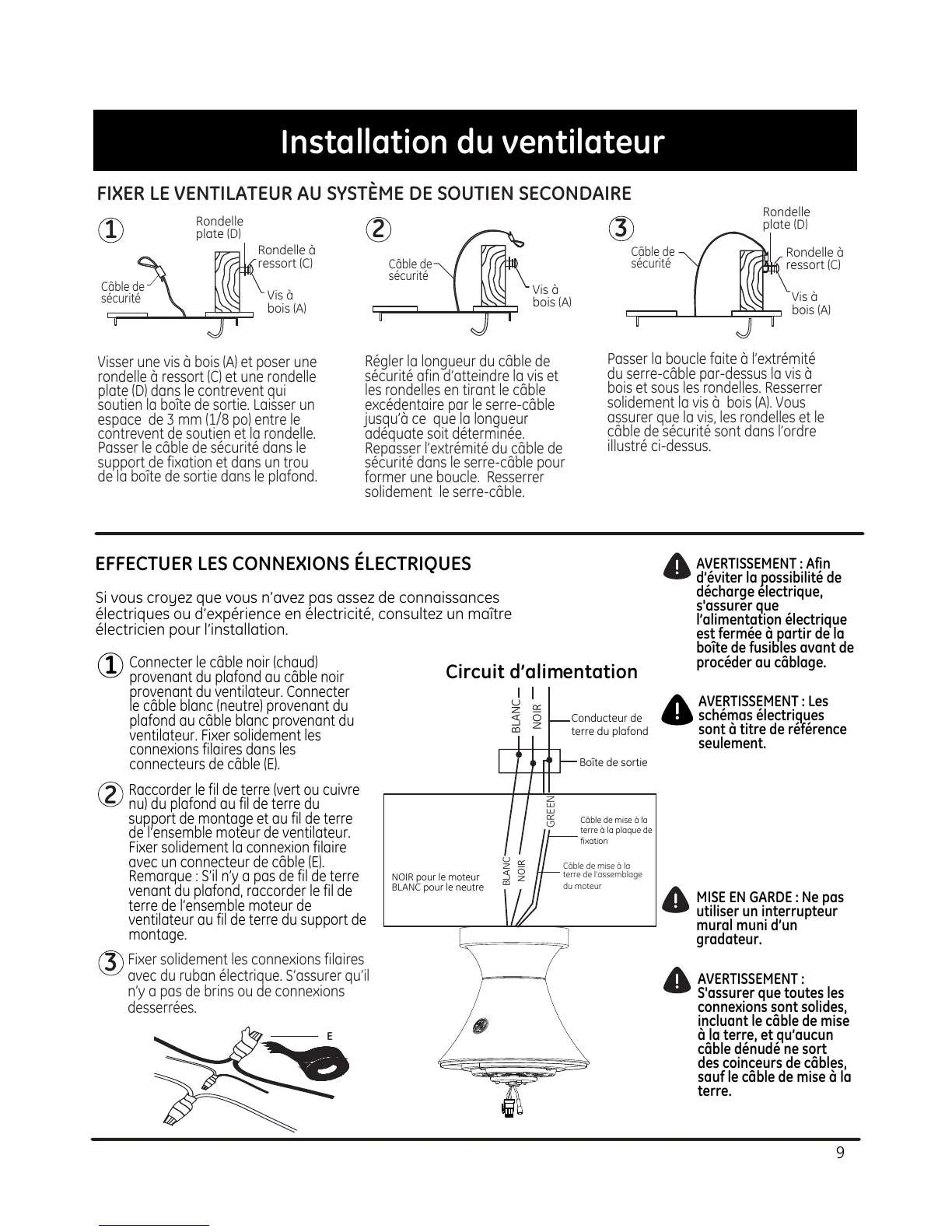 ventilateur. Fixer solidement les