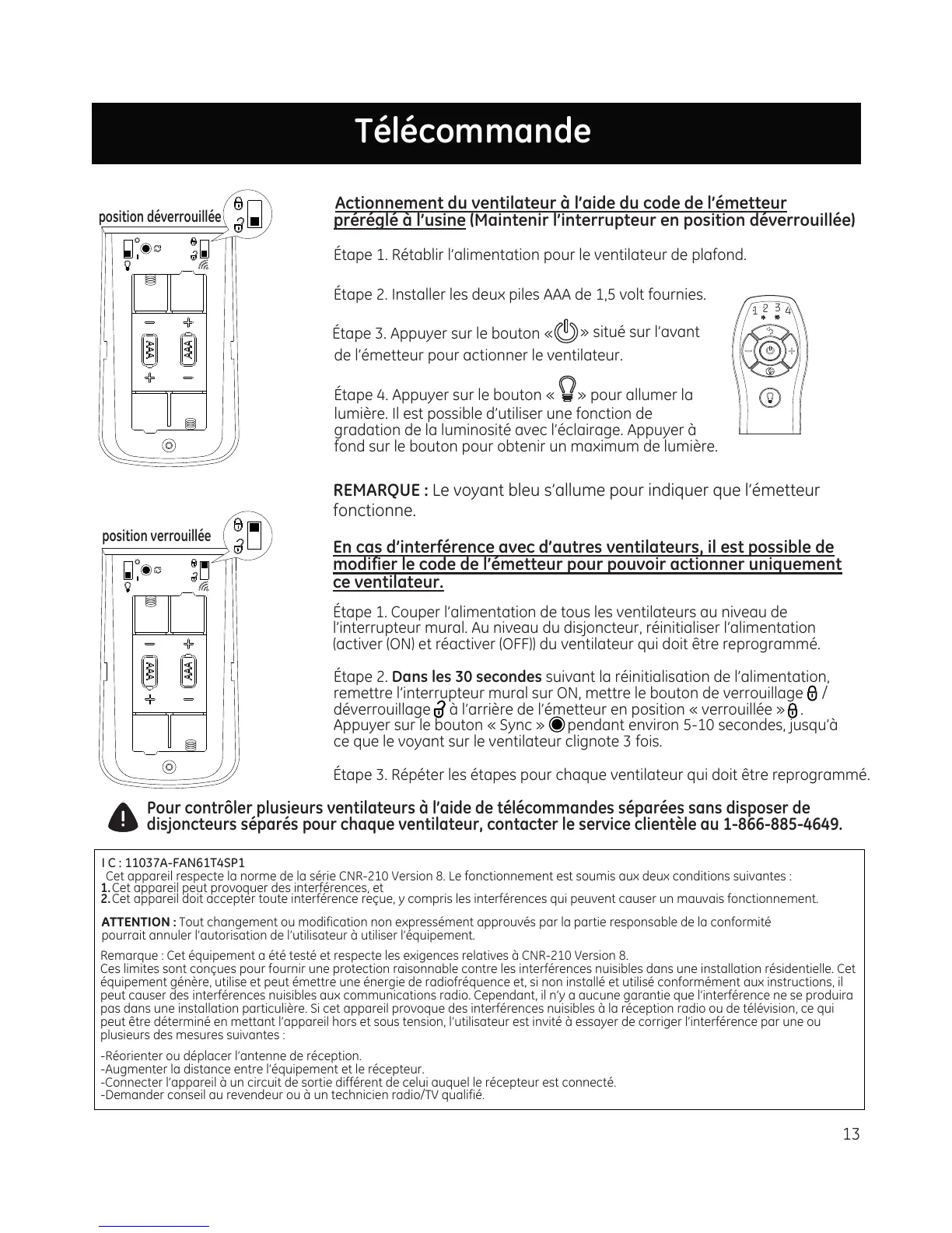 disjoncteurs séparés pour chaque ventilateur, contacter le service clientèle au 1-866-885-4649.
