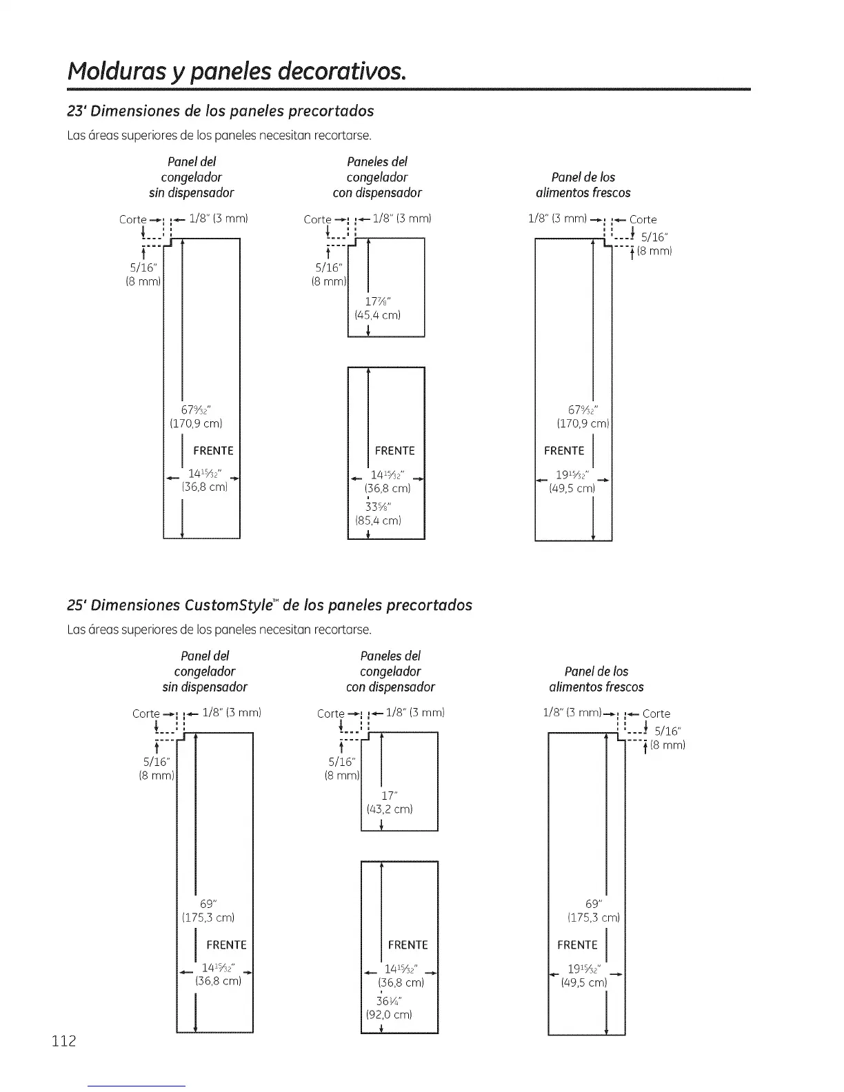 25' Dimensiones CustomStyle'" de los paneles precortados