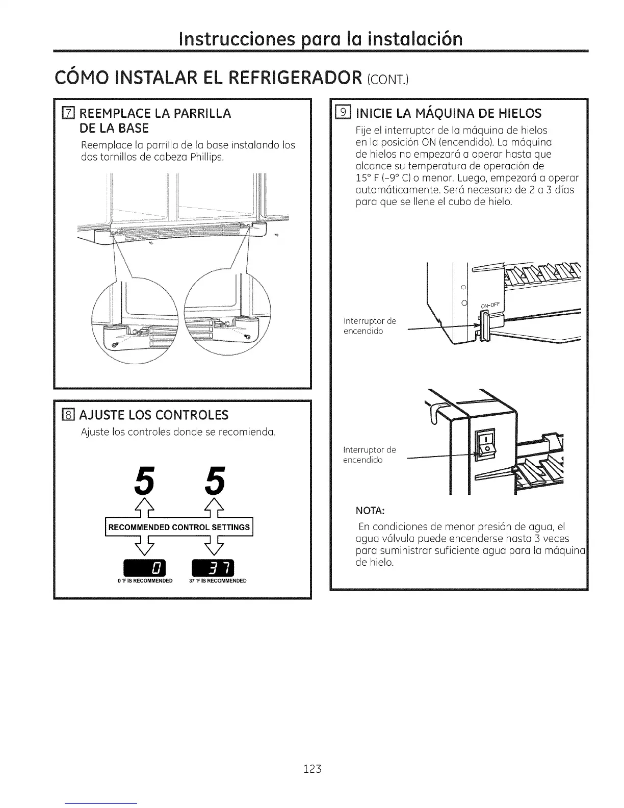 COMO INSTALAR EL REFRIGERADOR (CONT.)
