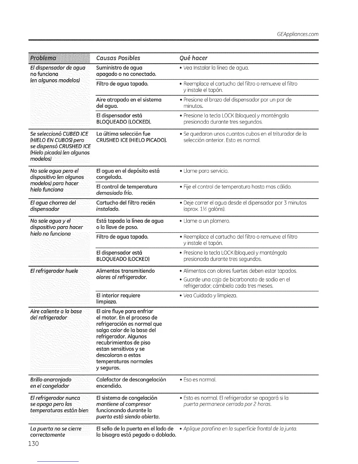 Filtro de agua tapado. • Reemplace el cartucho del filtro o remueve el filtro