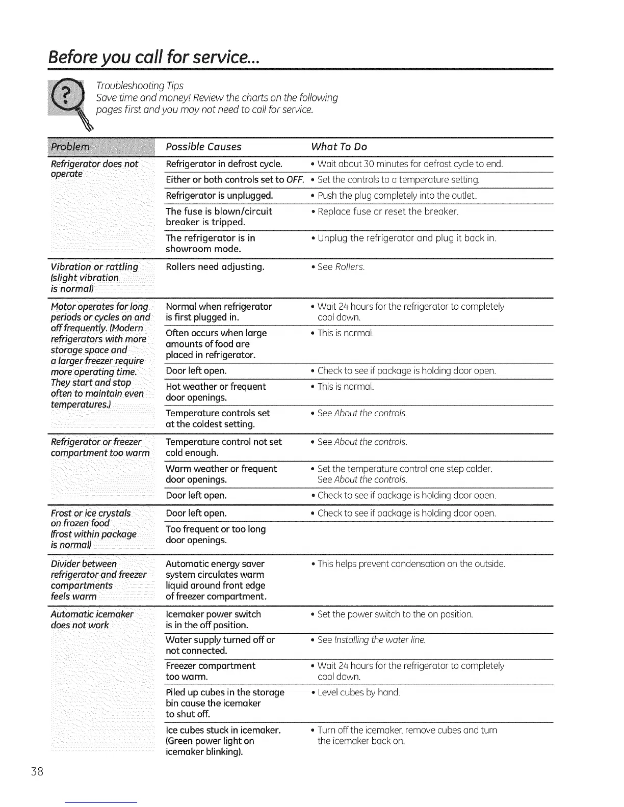 Refrigerator is unplugged. * Pushthe plug completely into the outlet.