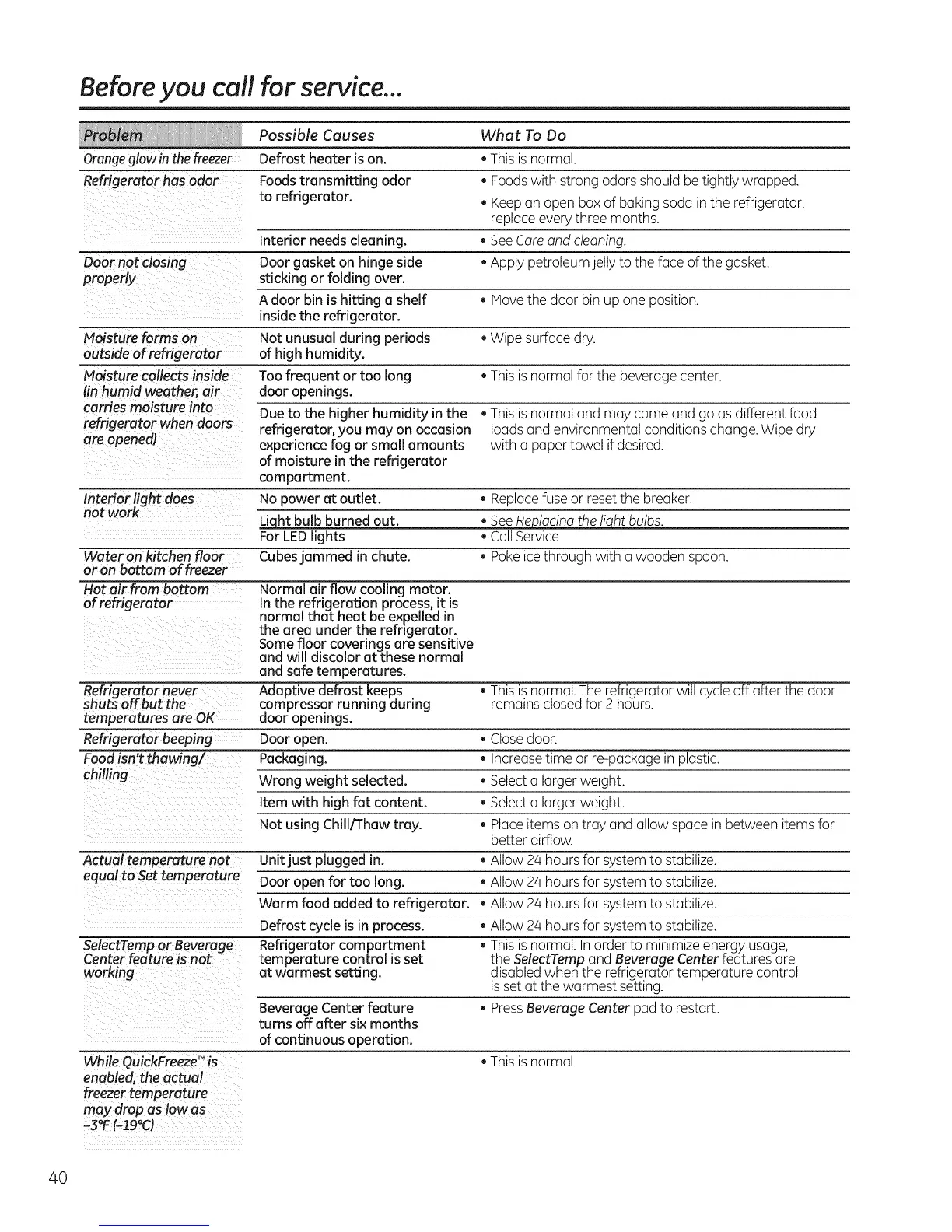 Center feature is not temperature control is set the SelectTemp and Beverage Center features are