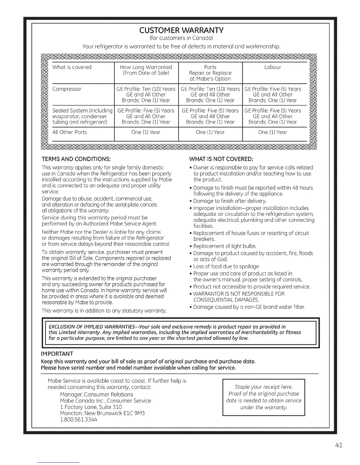 Your refrigerator is warranted to be free of defects in material and workmanship.