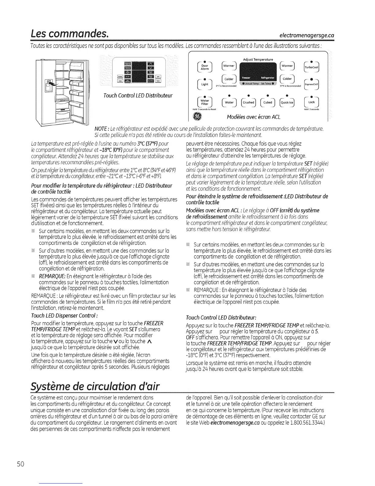 NOTE:Lerdfrigdrateurestexpddidavecunepelliculedeprotectioncouvrantlescommandesdetempdrature.