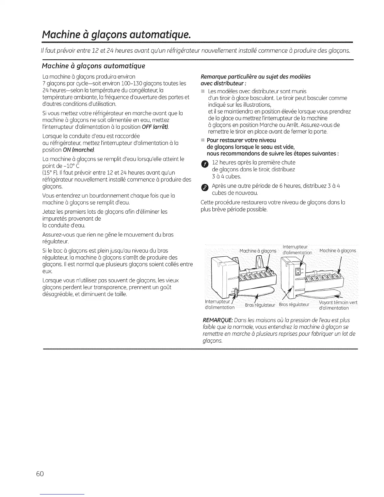 II four prdvoir entre 12 et 24 heures avant qu'un rdfrigdrateur nouvellement installd commence 8 produire des glaqons.