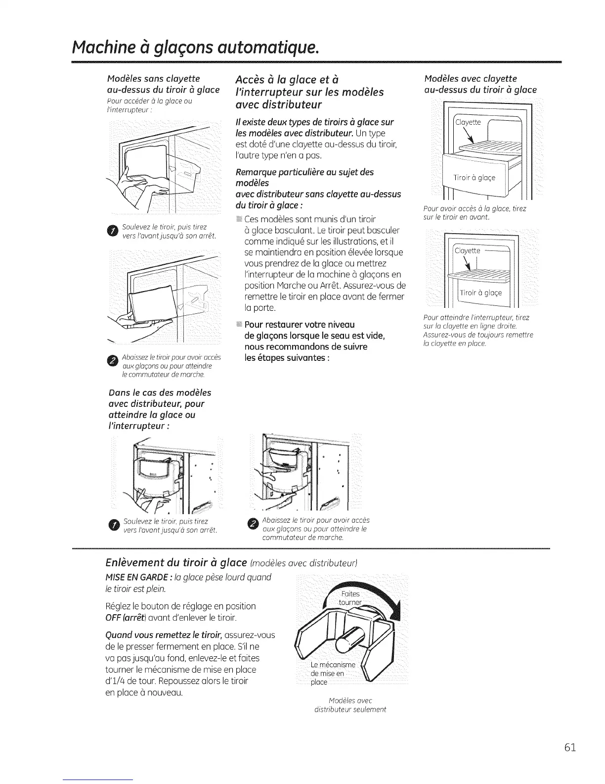 Enl_vement du tiroir _ glace (modUles avec distributeur)