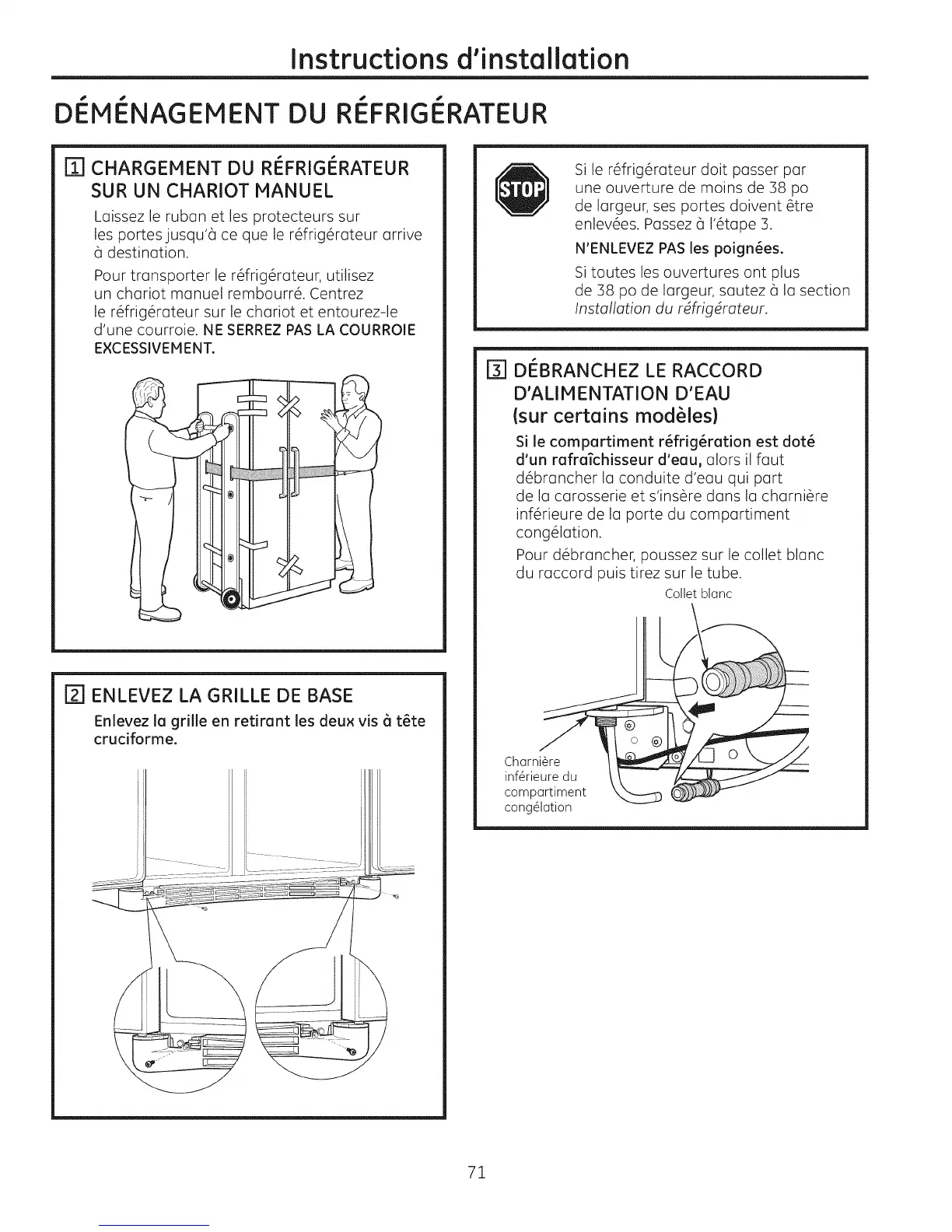 Pour transporter le r6frig6rateur, utilisez