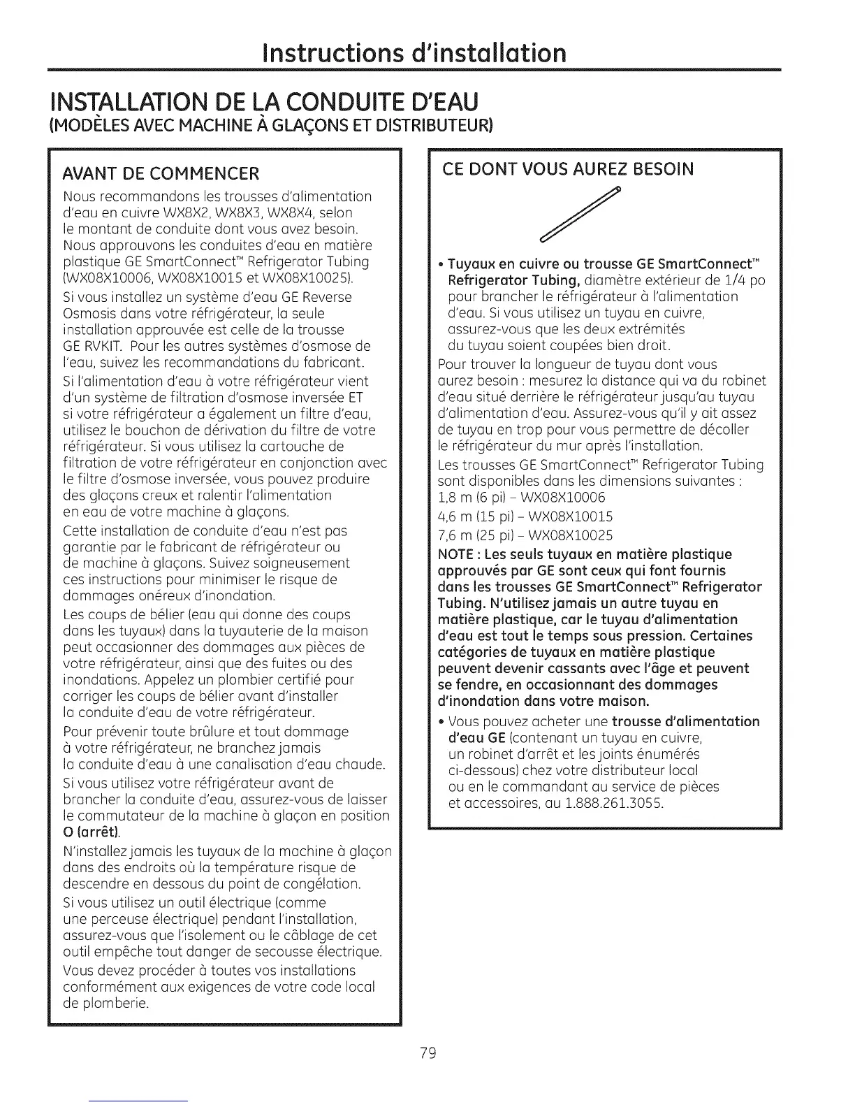 . Tuyaux en cuivre ou trousse GE SmartConnect'"