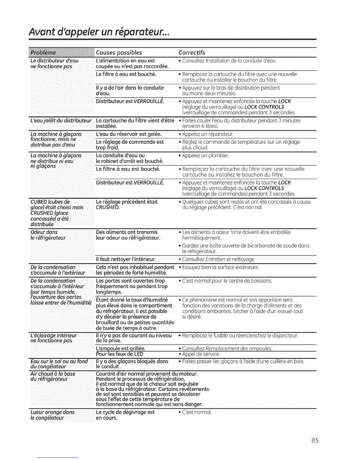 L'eau du r_servoir est gel_e. • Appelez un r6parateur.