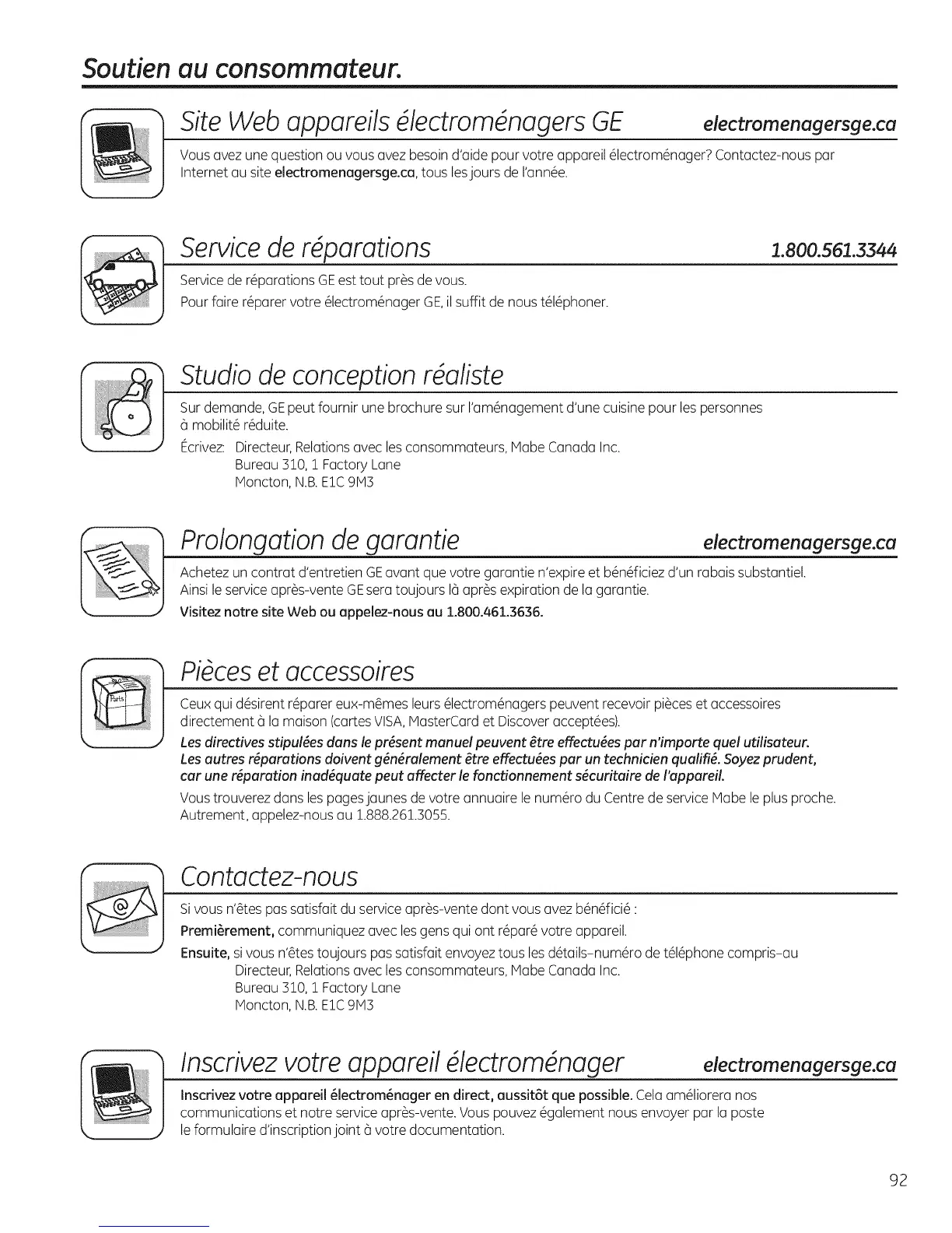 Ecrivez: Directeur,Relationsavec lesconsommateurs, Mabe Canada Inc.