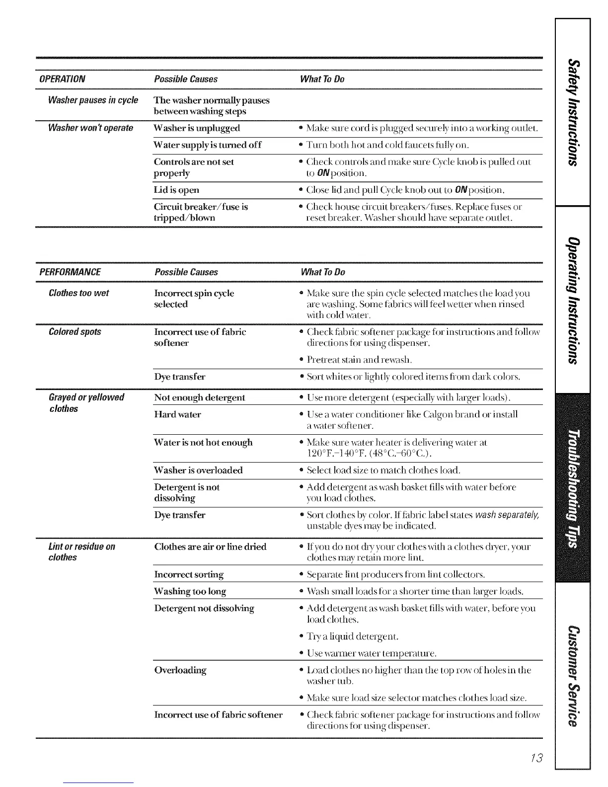 Grayed oryellowed Not enough detergent * Use more detergent (espe(ially with larger loads).