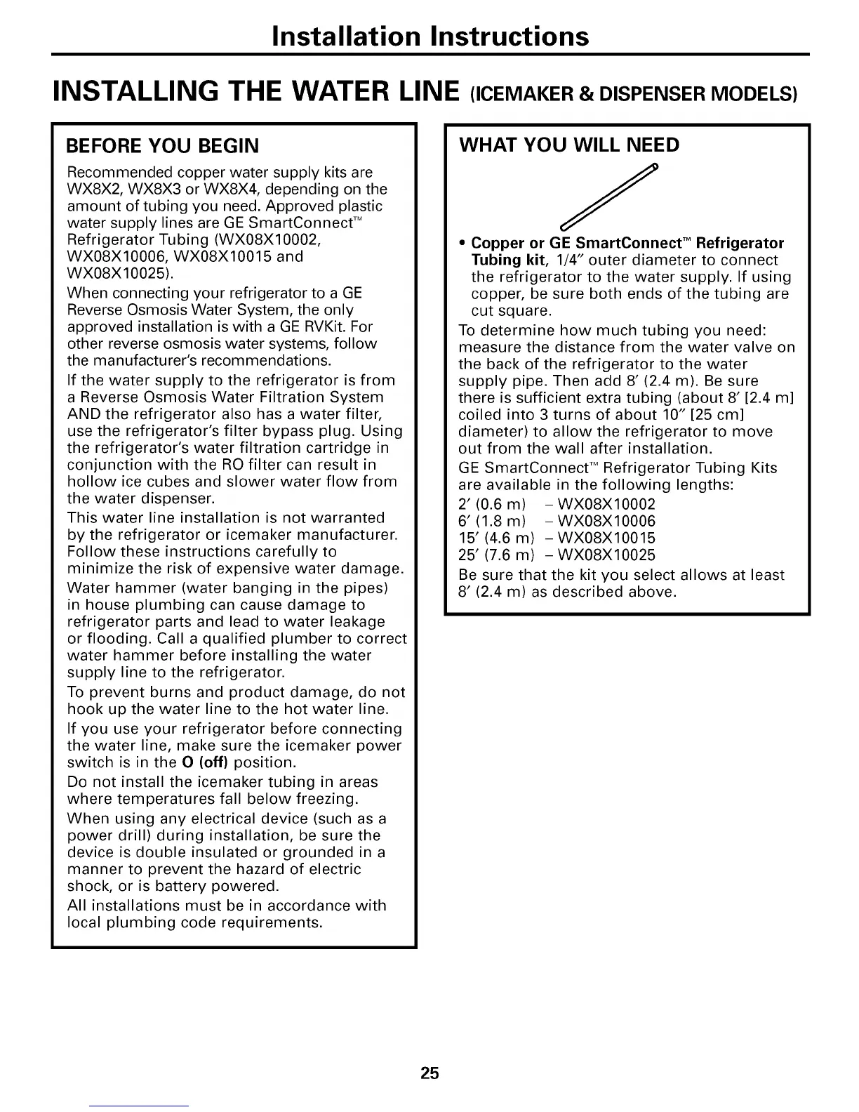 INSTALLING THE WATER LINE (ICEMAKER &DISPENSERMODELS)
