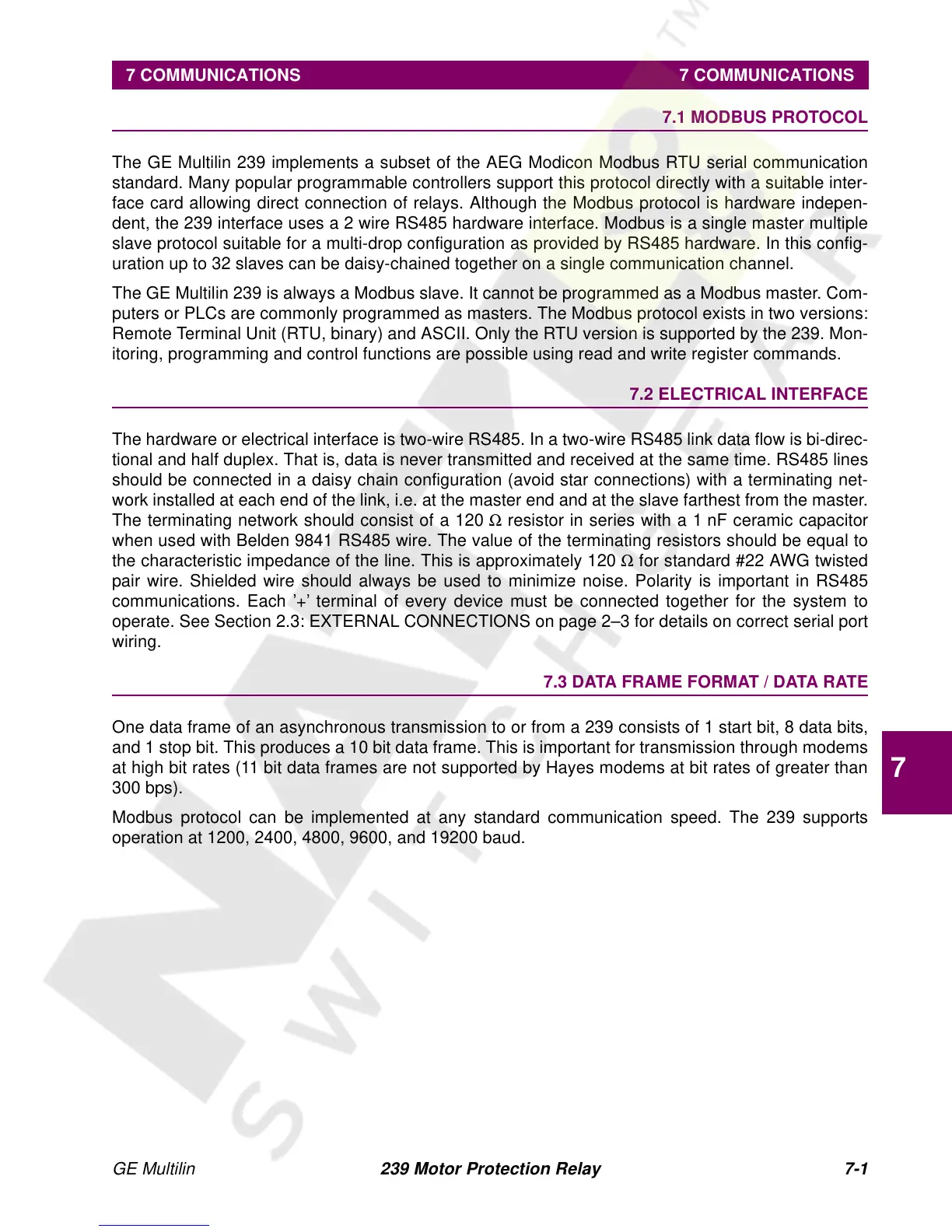 239 INSTRUCTION MANUAL 7 COMMUNICATIONS 7.1 MODBUS PROTOCOL