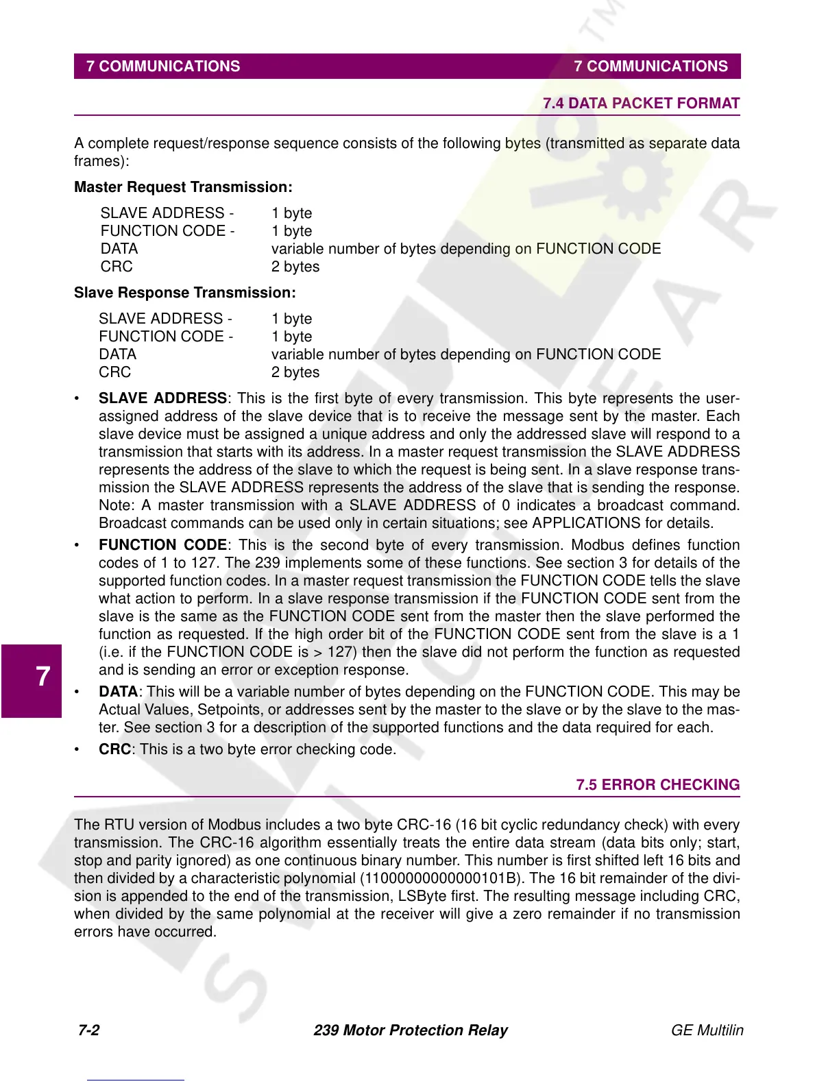transmission. The CRC-16 algorithm essentially treats the entire data stream (data bits only; start,